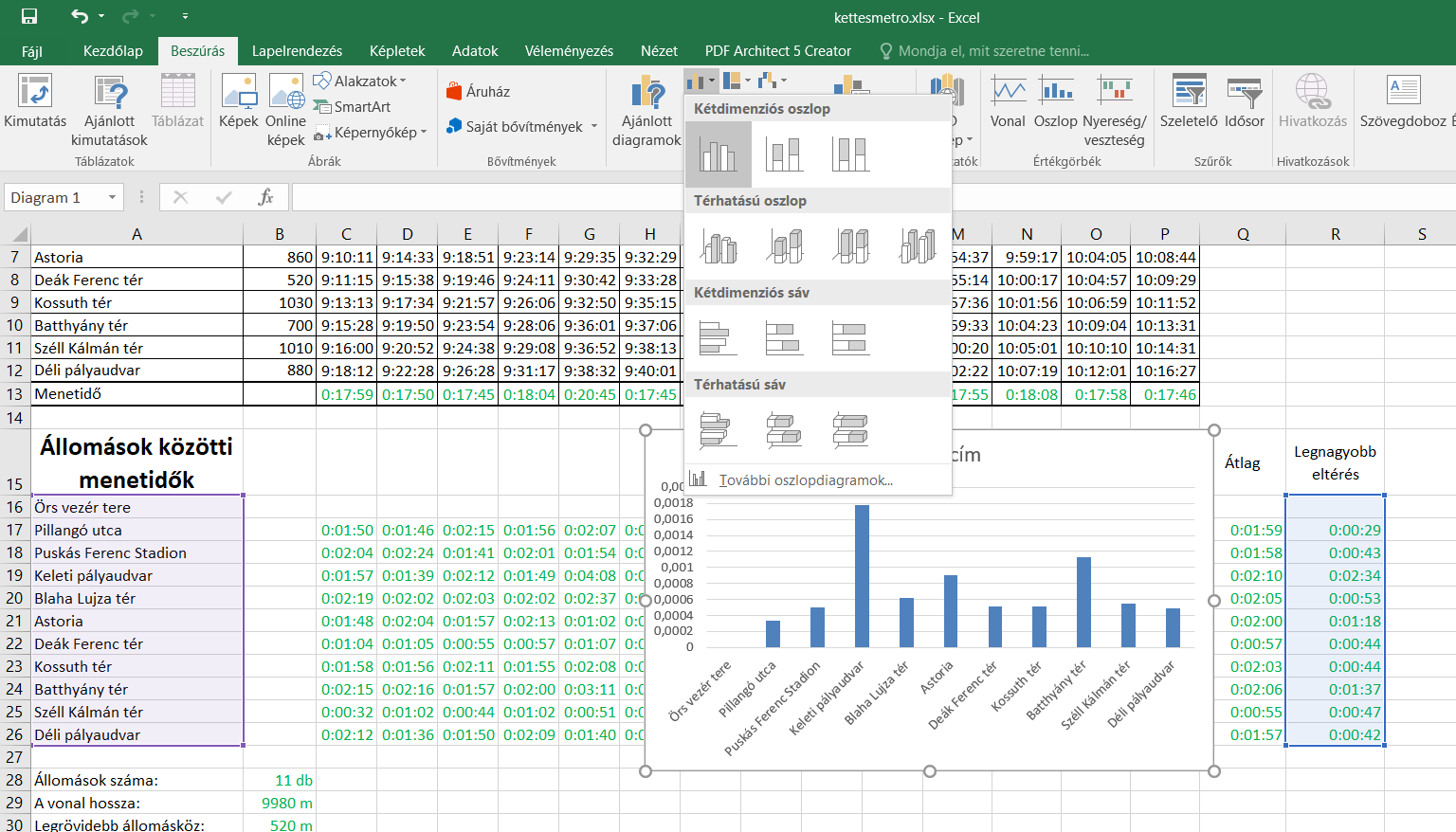 A diagram készítésénél hogyan kell az Örs vezér terét beilleszteni a diagramba?